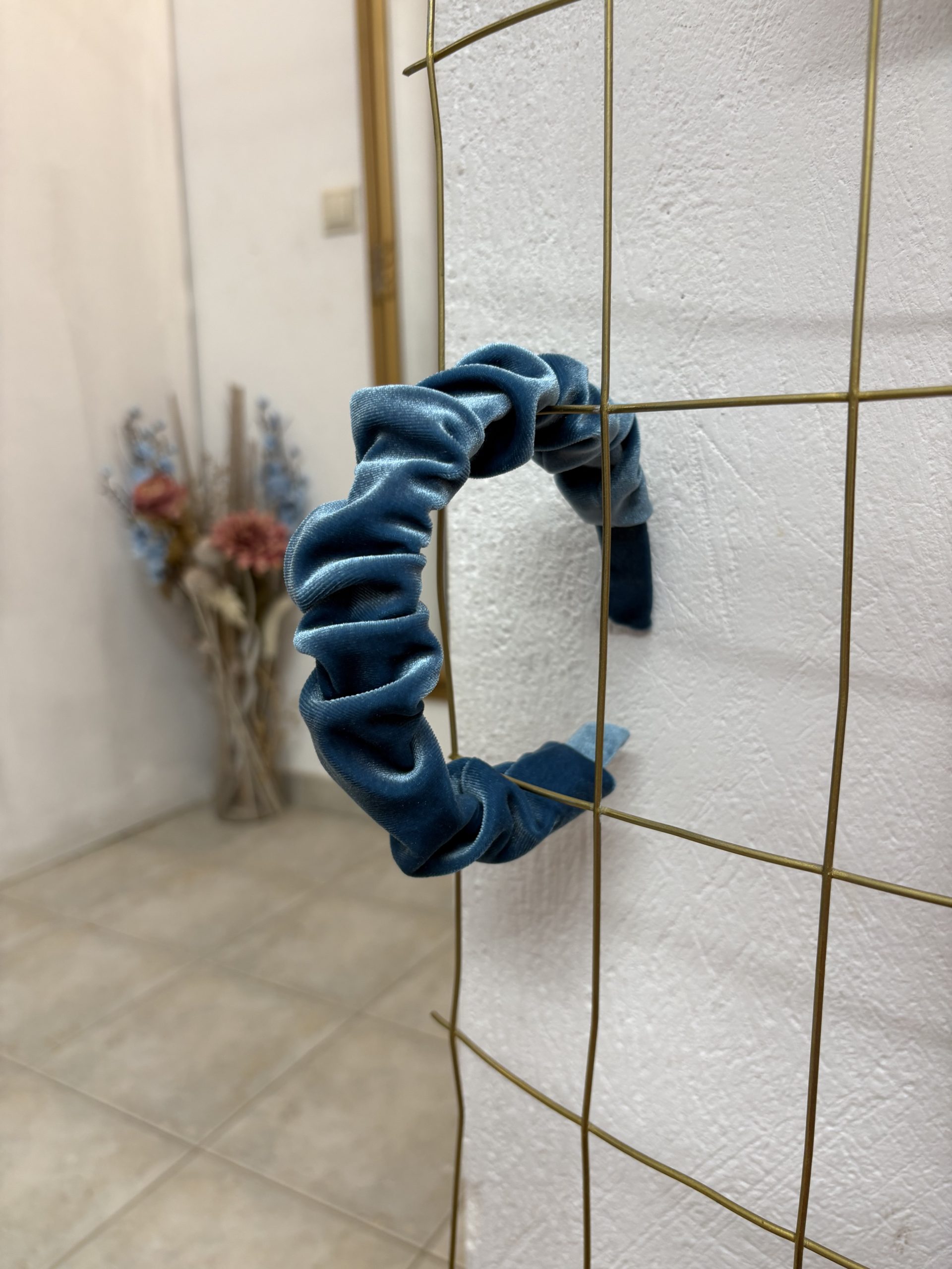 Γαλάζια Βελουτέ Στέκα με Σούρα