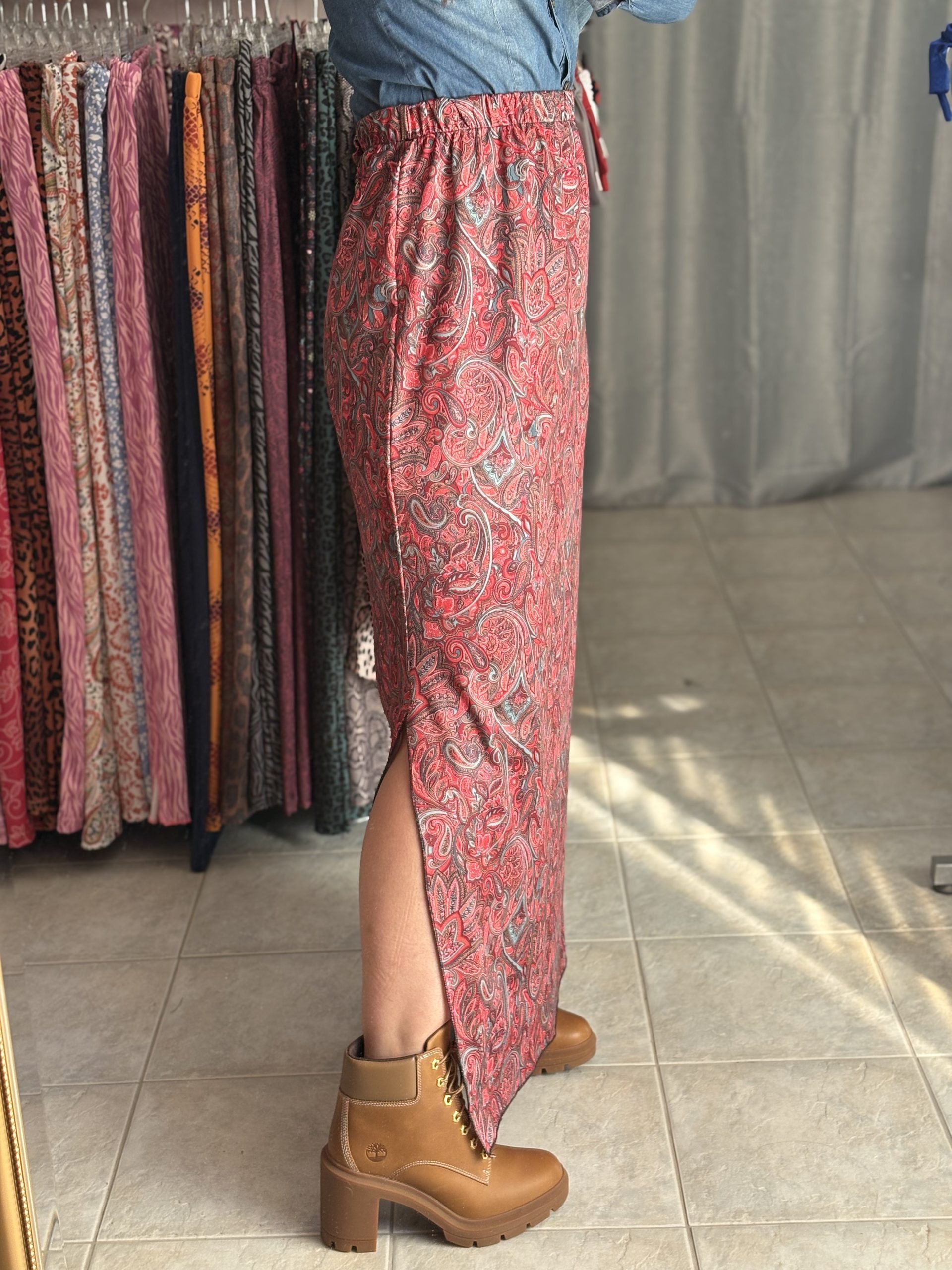 Η φούστα με λάστιχο αγκαλιάζει απαλά το σώμα χωρίς να πιέζει, ενώ το κομψό σκίσιμο στο πλάι προσθέτει θηλυκότητα, στυλ και άνεση στο περπάτημα!