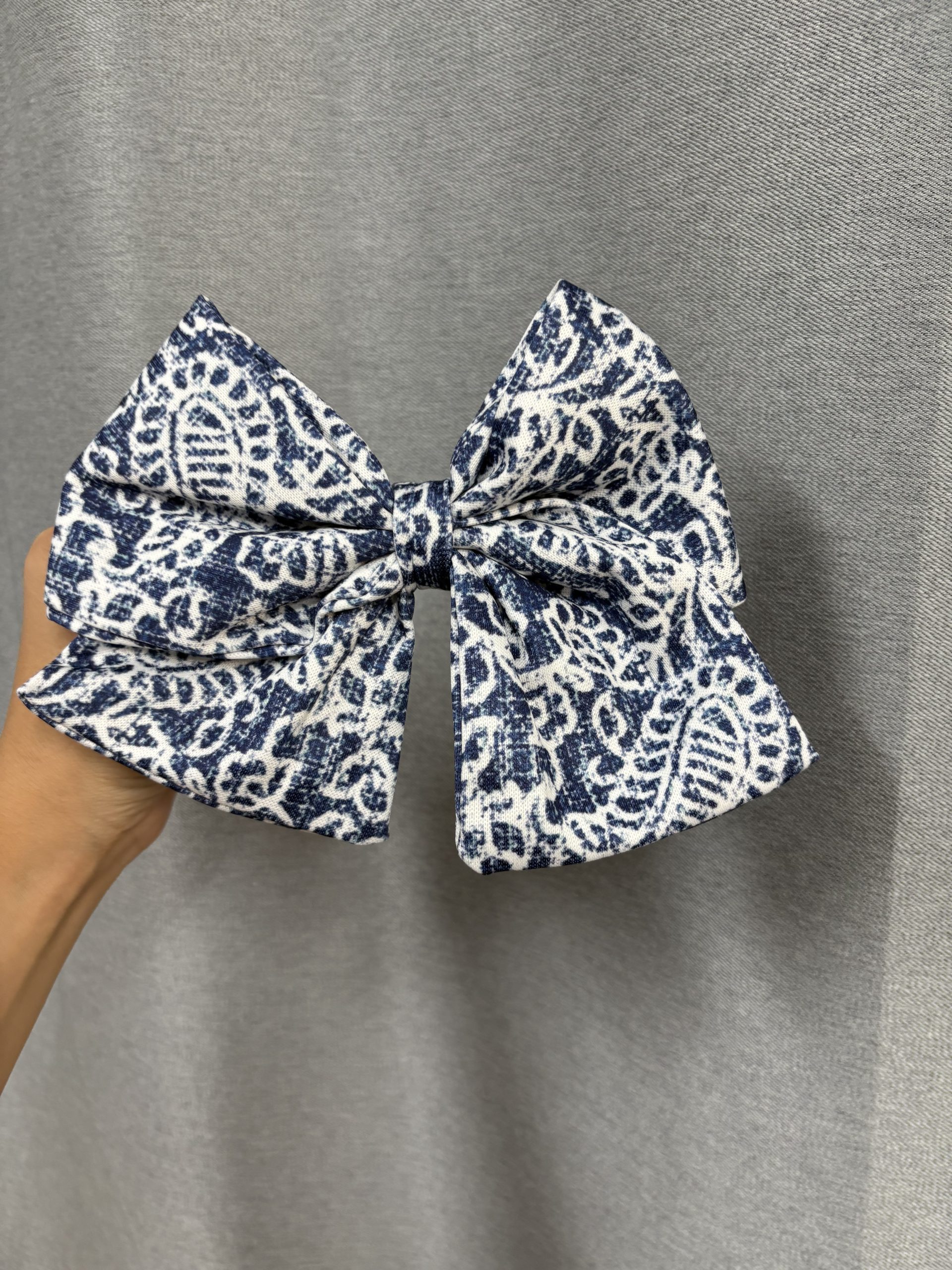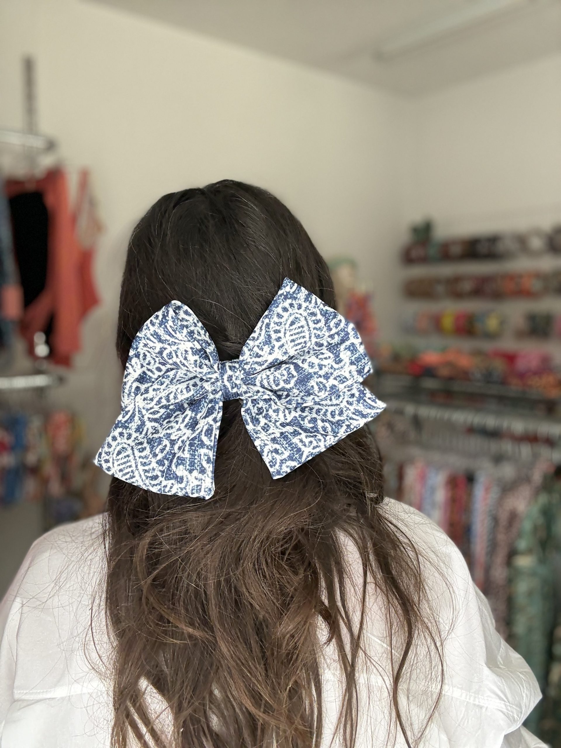 Γυναικείοι Χειροποίητοι φιόγκοι μαλλιών σε σχέδιο : White Blue Flowers